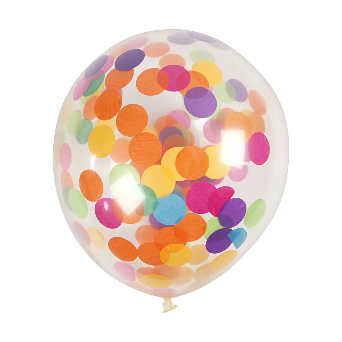 Runde balloner af klar naturgummi. Indeni konfetti af silkepapir i forskellige farver