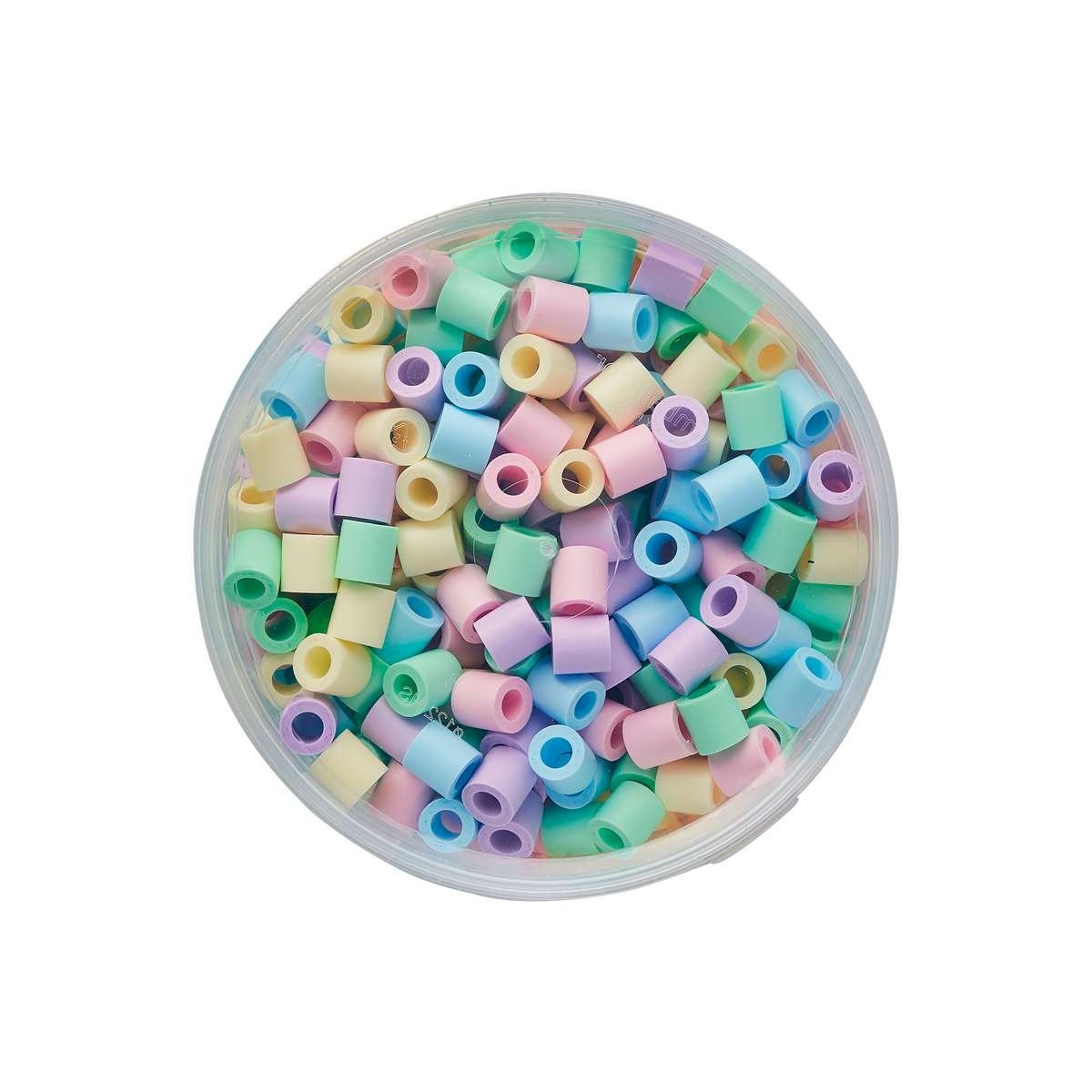 Spanden indeholder ca. 600stk. maxi perler i pastelfarver nr. 2, 95, 96 ,97 og 98.