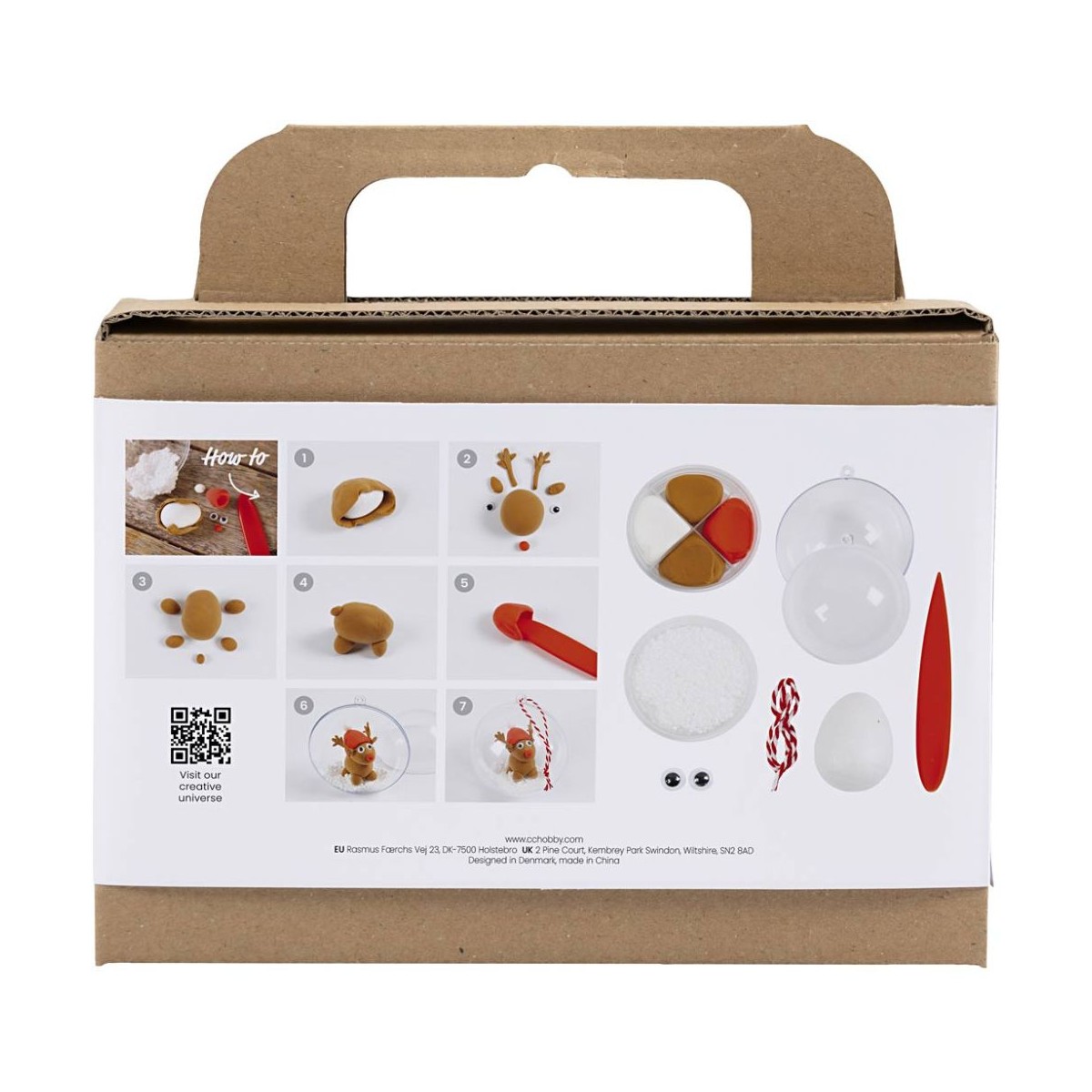 Indhold: Julekugle, Foam Clay, Silk Clay, styropor, rulleøjne, modelleringspind og snor.