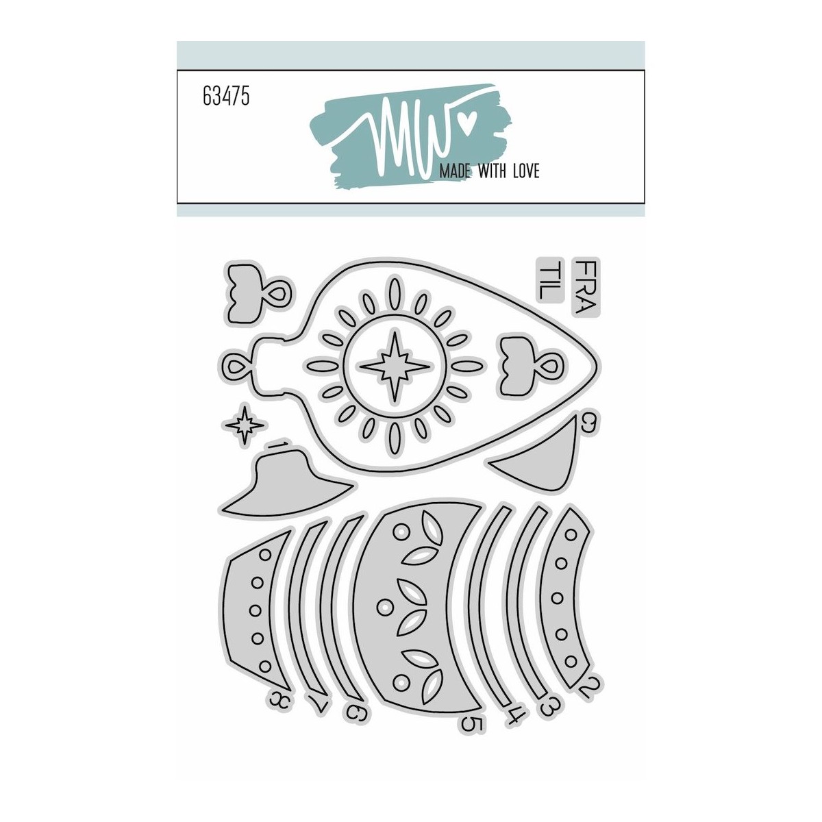 Christmas Card Ornaments fra Made With Love indeholder 17 dies til at lave en julekugle med forskellige pynt.