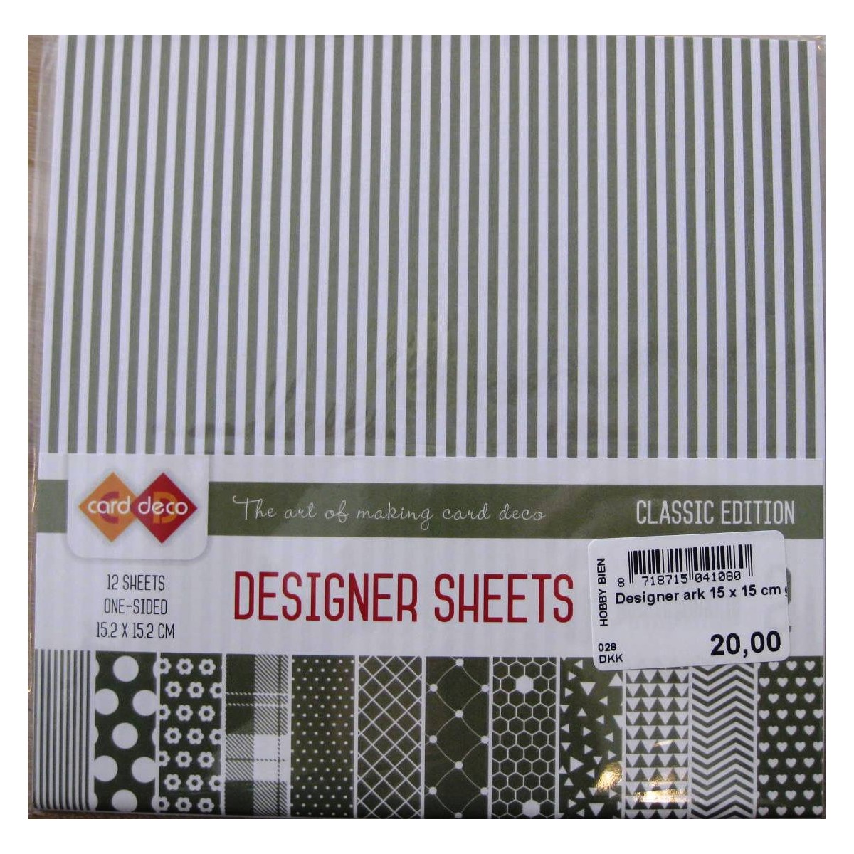 Designer ark med 12 forskellige mønstre i grønne nuancer, 15 x 15 cm karton 170 grams fra Card Deco