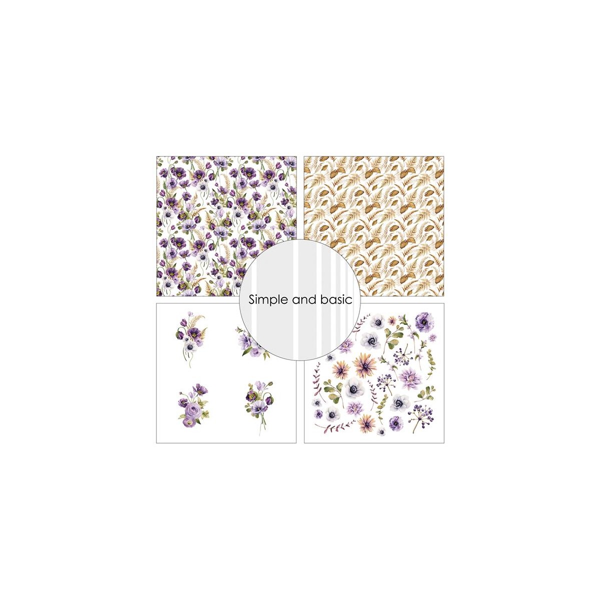 Purple floral mood paper fra Simple and basic, SBP731 indeholder 8 ark - 30,5x30,5cm i 200 gsm