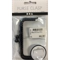 Bøjle til pung i mørk metal.