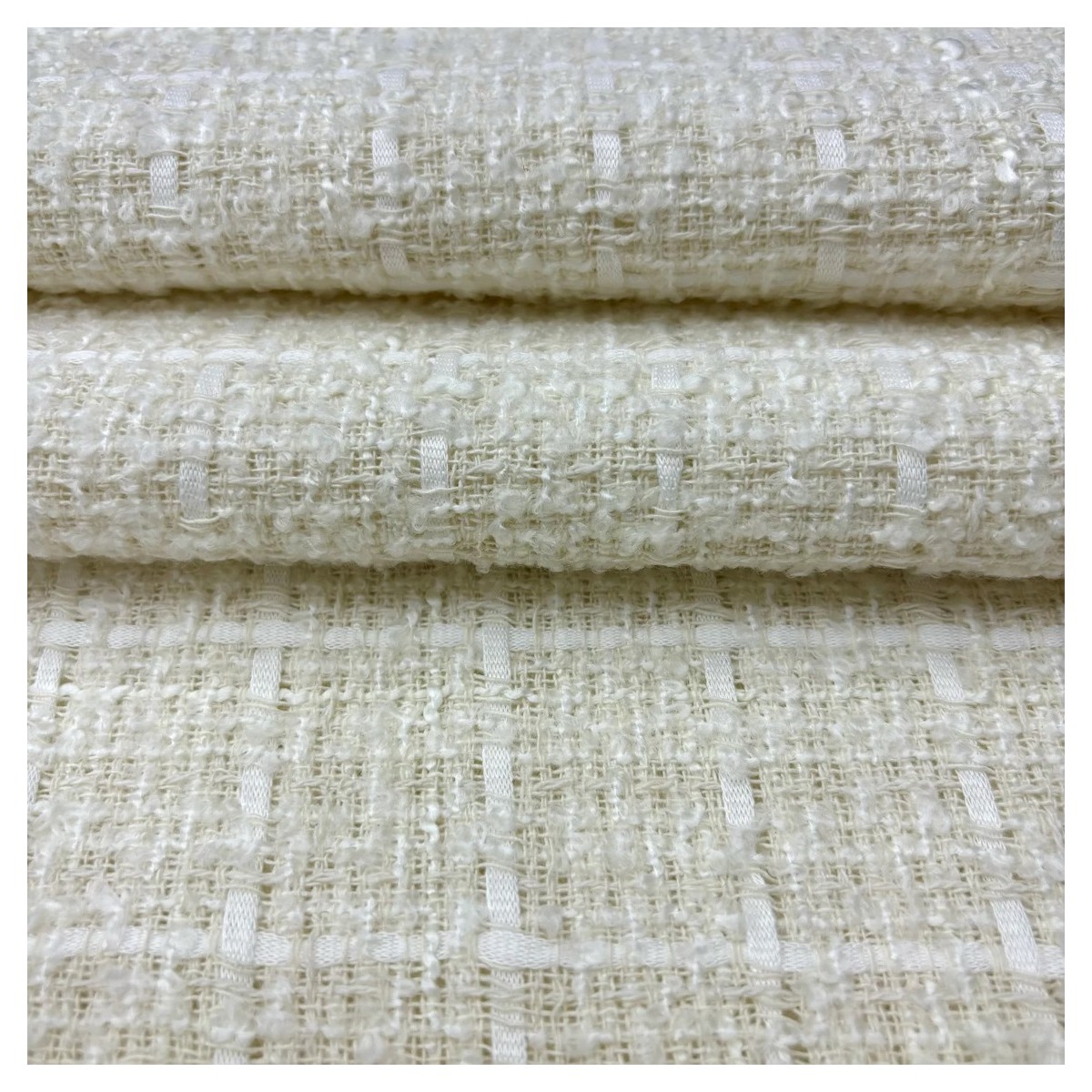 Ecru klassisk bomulds-tweedstof, Moda-stof til jakke, kjole, nederdel, moderigtig frakke, kjole, nederdel, uld-tweedstof